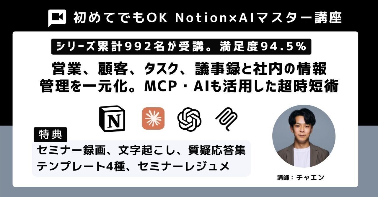 シリーズ第3回で満足度94.5%を達成したNotionマスター講座の完全アーカイブを限定100部で公開しています!