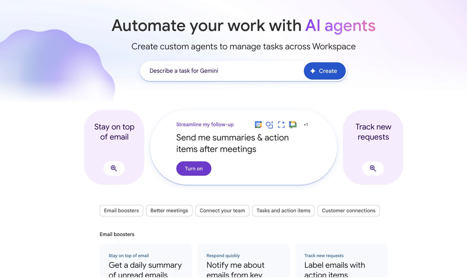 更に、Gemini搭載で自然言語で支持するだけで、エージェントの作成も可能です。